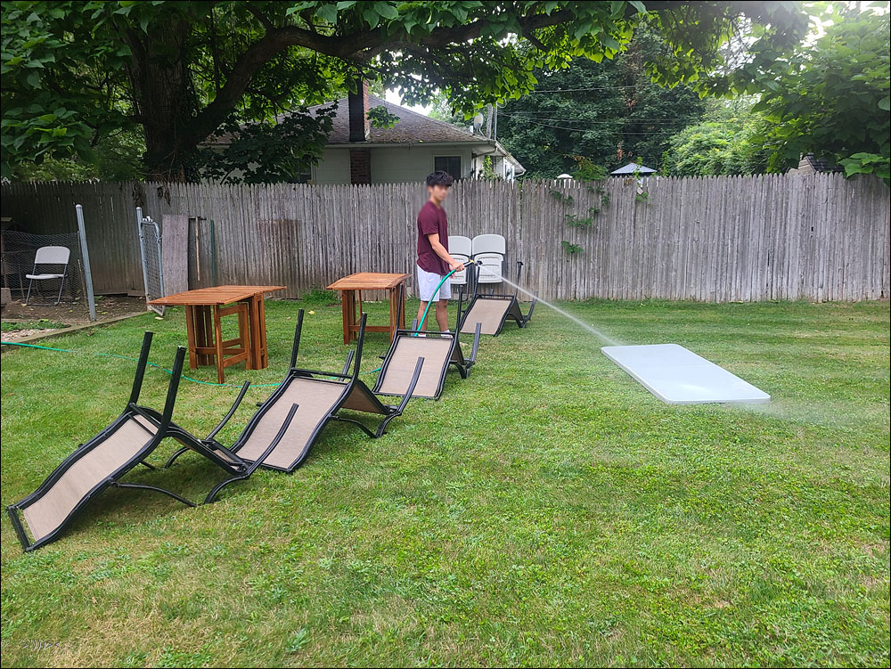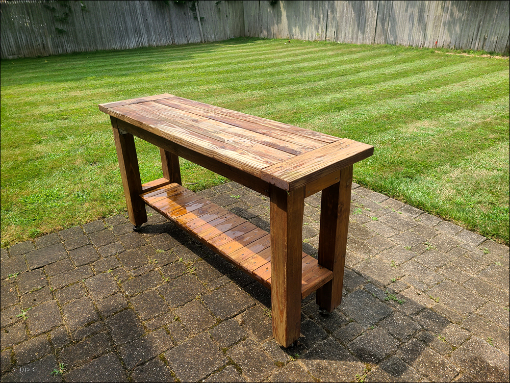 한 10년전 우리집에서 파티가 많을때 만든 테이블이다. 처마밑에 두고 텃밭 농사용픔등을 놓고 썼더니 이것도 먼지가 많이 쌓여서 수세미로 박박 닦아줬다.